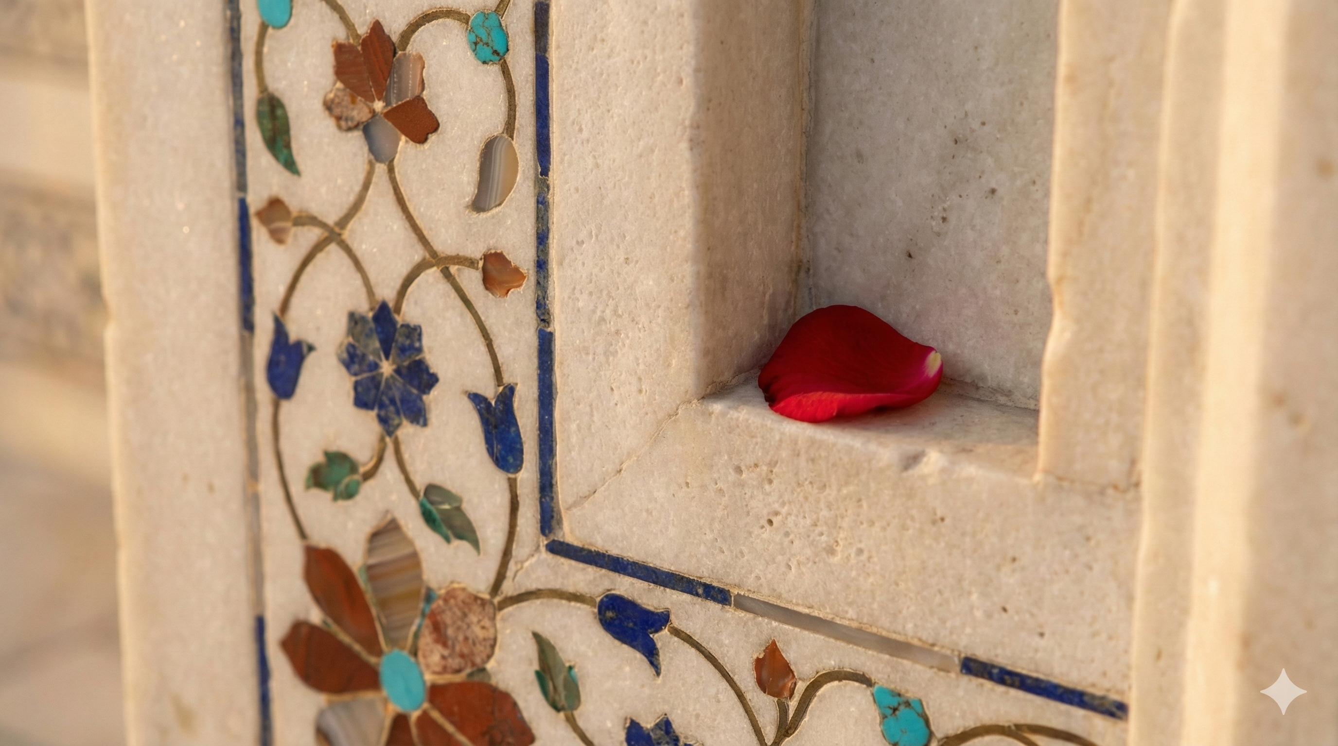 Tac Mahal'i uzaktan gördüğünüzde devasa bir beyazlık sizi çarpar. Ancak yaklaştıkça, o soğuk mermerin üzerinde açan rengarenk çiçekleri fark edersiniz. Bunlar boya değildir.